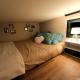 kitchenette, salle de bain avec douche et WC, espace salon avec un canapé convertible (literie de qualité), mezzanine avec 2 couchages (à noter que la hauteur sous plafond de la mezzanine est de 95 cm)