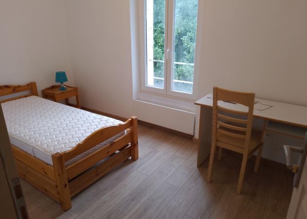 Dans une maison refaite à neuf, meublée, à La Couronne, à proximité du Centre universitaire, de l'Hôpital de Girac, location d'une chambre d'environ 10 m2 meublée d'un lit d'une personne, une table de chevet, d'un placard, d'une commode, un bureau, une chaise.