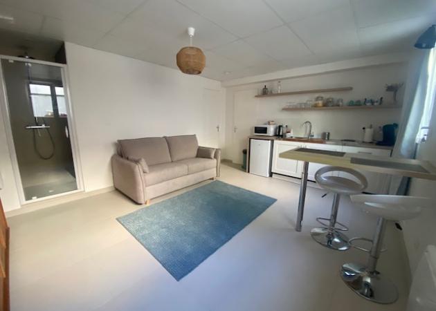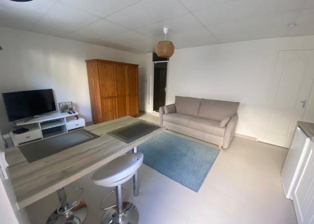 Equipé d'un canapé rapido confortable, d'une kitchenette avec réfrigérateur, cafetière, plaques, bouilloire, grille pain.