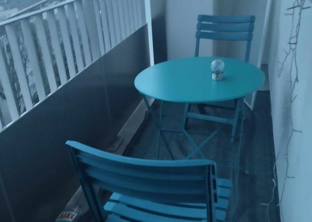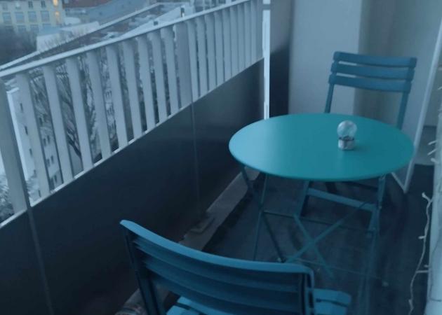 Balcon situé au 10e étage avec vue sur les toits de Paris.