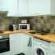 Une cuisine équipée, frigo congélateur, bouilloire, Nespresso, grille pain, plaque électrique, four, hôte.