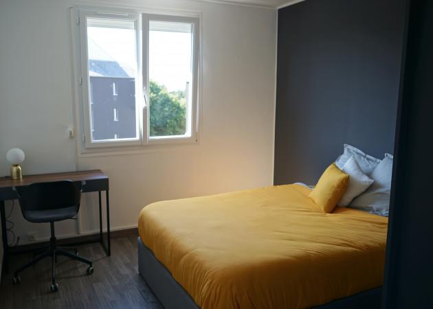 Chambre avec bureau au rez-de-chaussée d'une maison.