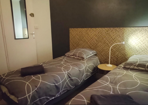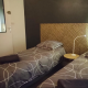 Votre chambre est composée de deux lits jumeaux (possibilité de les assembler pour un grand lit) d'un espace bureau et d'une penderie avec cintres.