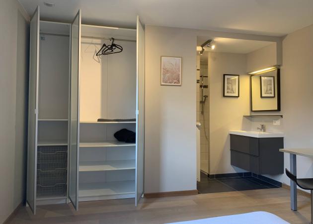 pour info: nous ne sommes pas sur le site universitaire de Louvain-la- Neuve mais à 5 km dans un quartier résidentiel calme ( gare Ottignies à 15min à pied et bus en bas de la rue)