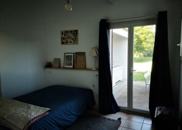 La chambre possède une salle de douche et se situe au rez-de-chaussée avec accès direct à la terrasse et au jardin.