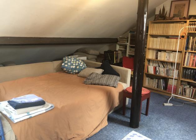 Je propose dans maison située à proximité du complexe sportif où se dérouleront les épreuves d’Escalade durant les Jeux Olympiques, un espace pour 2 personnes aménagé dans les combles , très confortable, avec la possibilité de cuisiner simplement, doté d’une plaque à induction, réfrigérateur, micro ondes etc, 1 lit de 1,60m. Une salle de bains / toilettes privative se trouve à l’étage. Vous pouvez profiter du jardin également. La maison se trouve à 900m de la gare du Bourget et un bus (arrêt devant maison) vous y conduit. Le RER B vous transporte en 7 minutes au Stade de FRance et en 15 mn au centre de Paris. De plus le Bourget possède le Musée de l’Air et de l’Espace , incontournable !!!