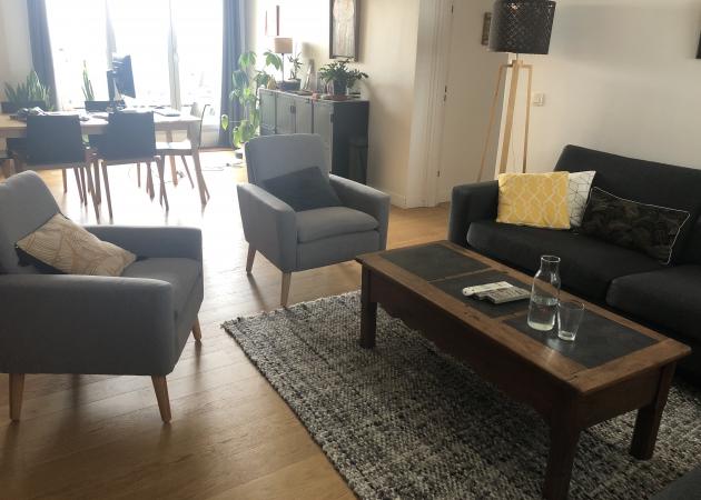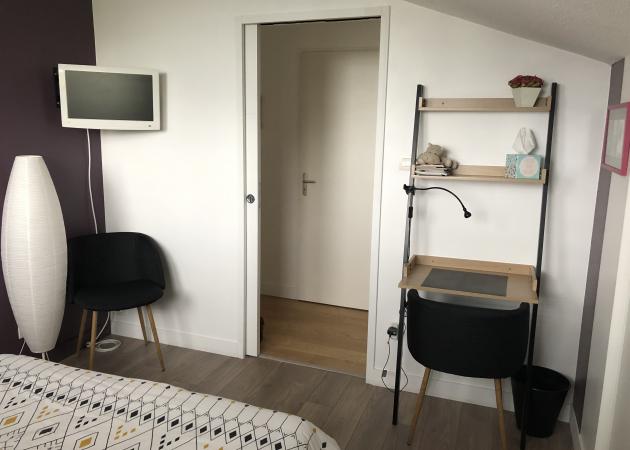 L’appartement dispose d’un grand salon, d’une cuisine toute équipée qui sera bien sûr utilisable par le locataire (de la place dans le frigo est réservé aux locataires et les produits de premières nécessité comme sel et huile sont fournis), une grande terrasse de 30m2 sans vis-à-vis