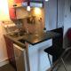 Coin cuisine avec Frigo, plaques de cuisson, four micro onde et cafetière.