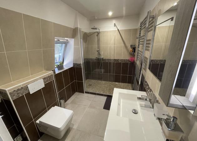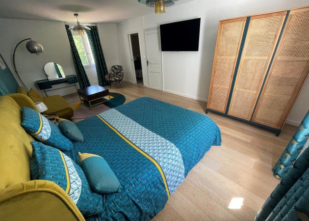 Chambre de standing dans belle demeure, refaite à neuf, comprenant un lit 160, avec chevet, une grande armoire, bureau, fauteuil, tv, une salle de douche et WC privatif vue au sud et nord sur parc boisée. transport en commun (bus) et commerce à proximité (1 min à pieds).