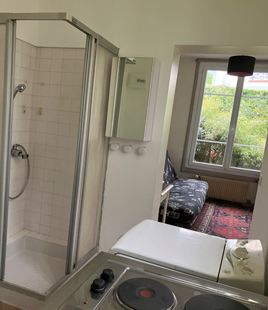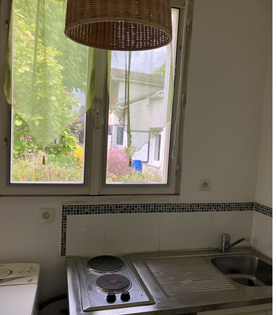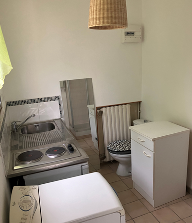 Le studio dispose d’une pièce principale et d’un espace cuisine/salle de bain séparé. Il est équipé d’un clic/clac confortable de 230cm, d’une TV, d’une table de TV et d’une coiffeuse. Kitchenette aménagée et équipée. Cabine de douche. WC. Entrée par un portillon séparée de l’accès du propriétaire.