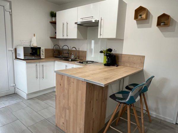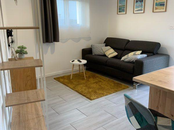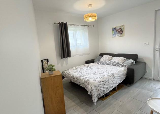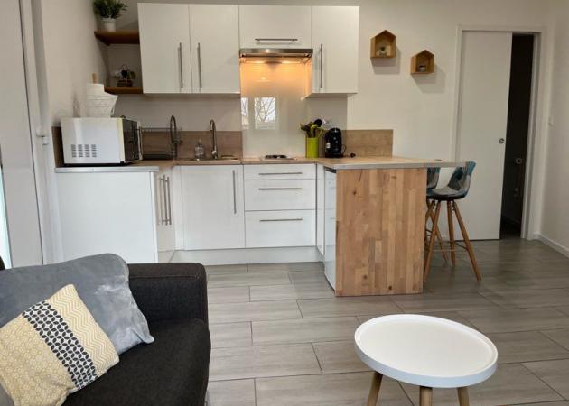 - Pièce à vivre de 20m2 avec canapé convertible d'excellente qualité pour 2 personnes et cuisine équipée.