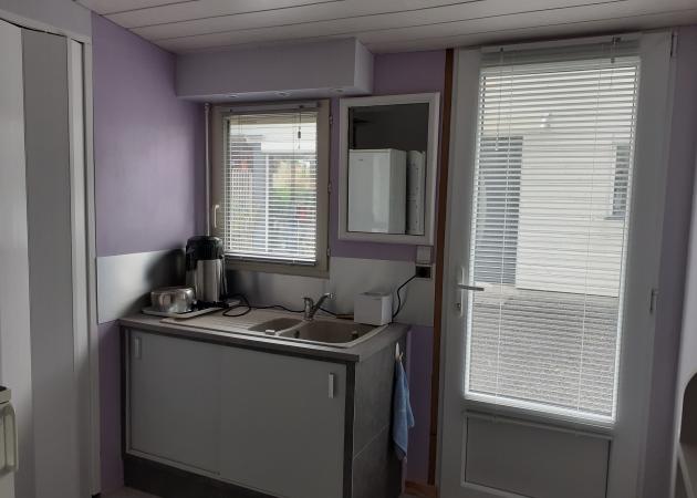 Studette comprenant un couchage en 140 pour 2 personnes avec 1 evier et 1 espace douche et wc