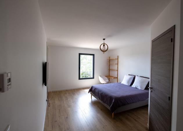 Si vous êtes 4 adultes voyageant ensemble, une seconde chambre de 22 m² peut être mise à votre disposition pour 52 € la nuit, elle comprend un lit de 160 X 200 confort assez ferme, WiFi (pas de TV), WC et salle de douche privés à l’extérieur de la chambre. Cette chambre n’est jamais louée seule. Pour la mise à disposition de cette chambre nous contacter.