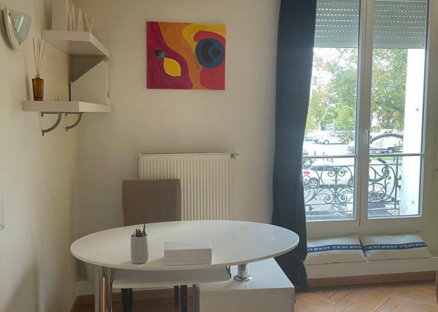 je loue dans mon appartement de 3 pièces, une chambre de 14 m² meublée et lumineuse. Accès à la cuisine (place dédiée dans le frigo et le placard), salle de bain, WC. Équipements proposés : draps, serviettes, fer à repasser, sèche-cheveux, machine à laver séchante, wifi. La pièce de séjour n’est pas partagée, car j’y travaille et j’y dors.