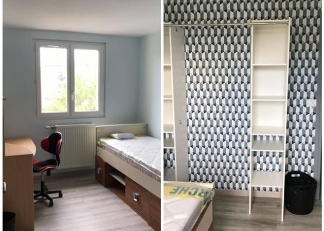 Les chambres de 11m2 (une coté Est et une côté Ouest) sont aménagées: lit en 90 (avec matelas), couette, bureau, chaise de bureau, placard et table de nuit. Porte de chambre avec clé individuelle pour votre intimité.