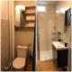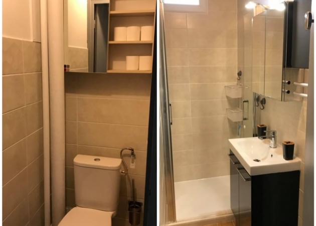 Salle de bains avec bac à douche 120x80, lavabo sur meuble et sèche serviette électrique. WC séparé.