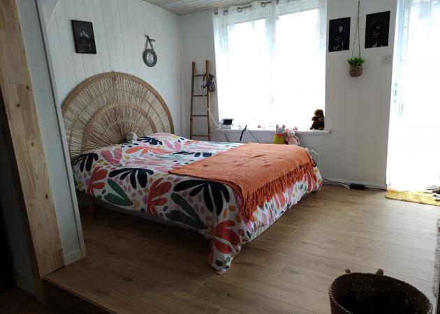 Chambre de 23 m2 à louer pour 4 pers avec un lit double + BZ dépliable en lit double. Balcon-terrasse attenant à la chambre. Salle d'eau privative.
