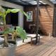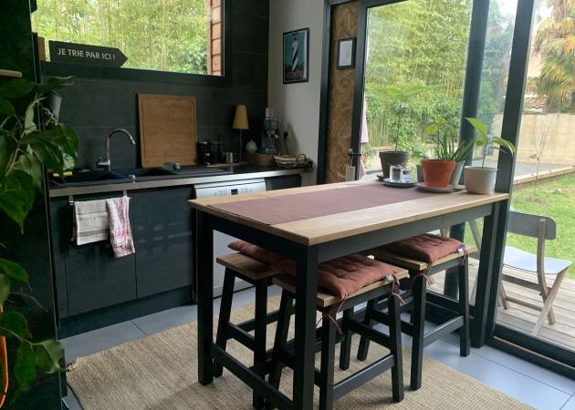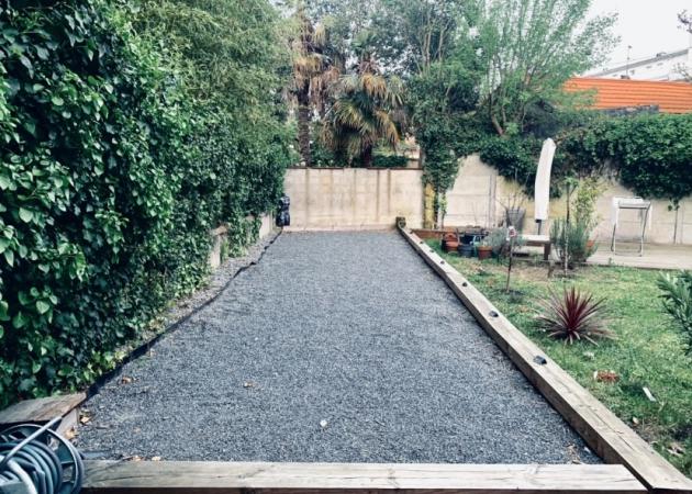 Un appartement en rez de chaussée de 75m2 avec un grand jardin, trois terrasses dont une couverte et un terrain de pétanque.