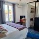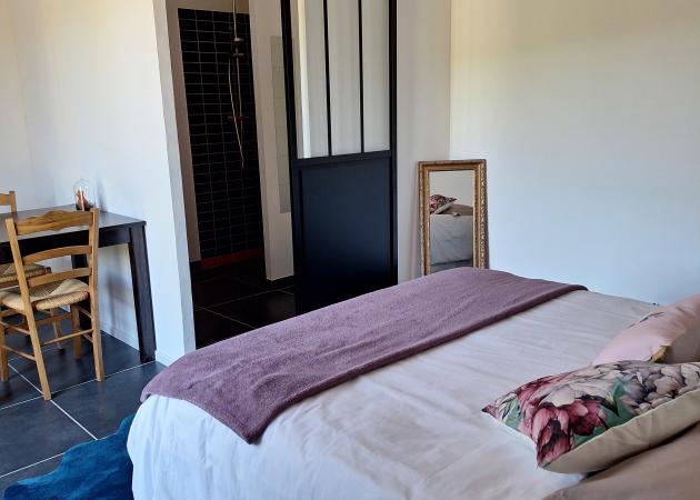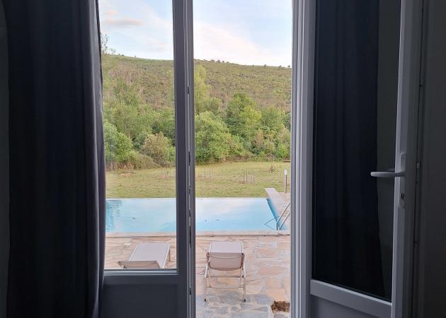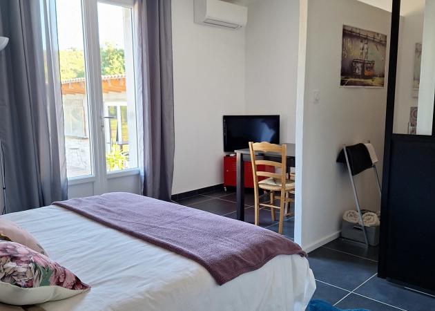 Télé, clim, accès piscine et terrasse dans un camping à la ferme .