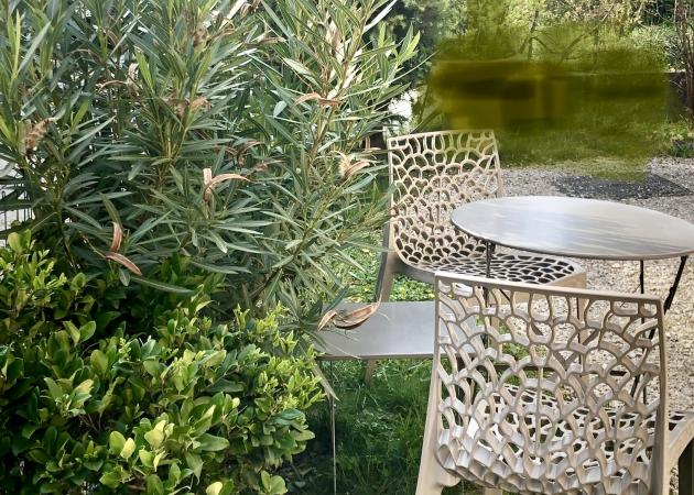 Jardin avec mobilier.