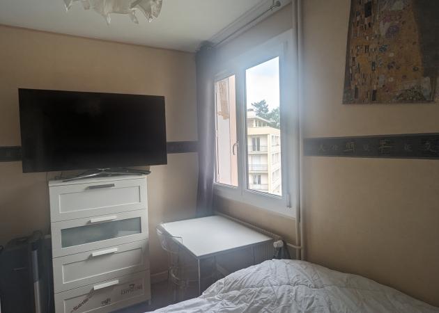 Trois pièces, je vis dans la pièce a vivre, je laisse à disposition une chambre lumineuse,avec télé grand écran, wifi, un bureau, un canapé lit de qualité avec très bonne literie , un bureau. Cuisine toute équipée avec balcon juste pour vous., salle d'eau et produits de toilette, à partager. Entrée discrète sans me déranger. Parking gratuit.bus à la porte, pour la gare ,15mn. Leclerc Marie pharmacie à 10 mn à pieds.