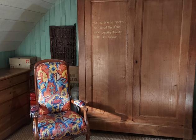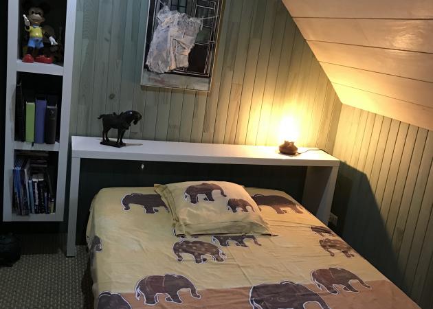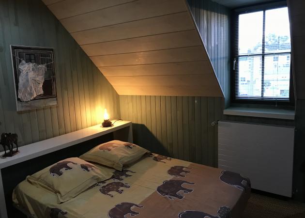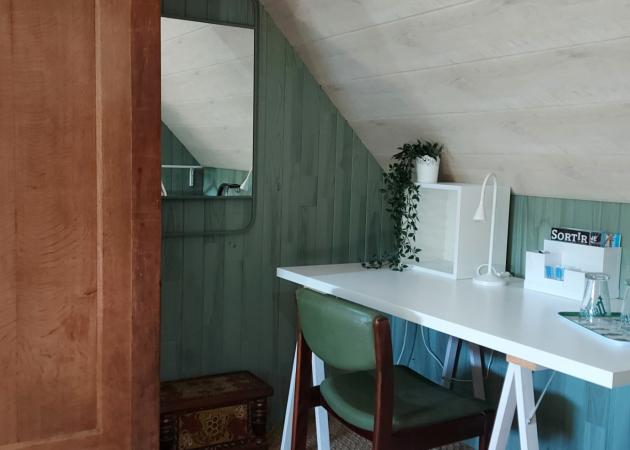 Chambre au 2éme étage avec lit double, bureau, espace de rangement