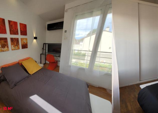 Les chambres sont lumineuses et agréables avec balcon donnant sur jardin et sur cour. Elles sont meublées comprenant : lit double, bureau, grand placard dressing, TV, WiFi, linges literie et toilette.