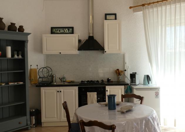 - une cuisine avec réfrigérateur, cuisson au gaz, four électrique, 2 cafetières (classique + Senseo), bouilloire, et toute la vaisselle et matériel de cuisine