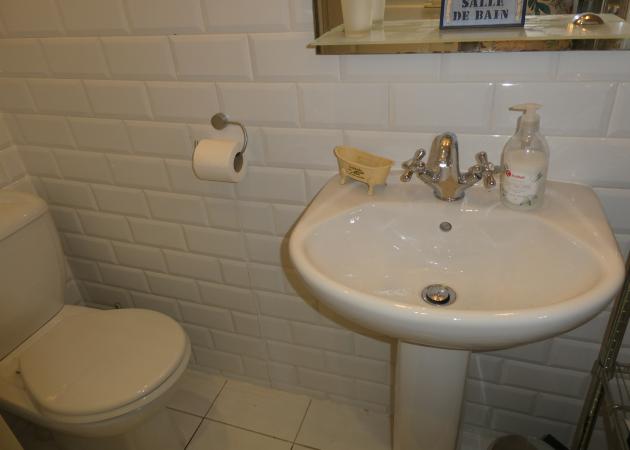 . sur la terrasse, une table, 3 chaises, un parasol, 2 chiliennes, lampes solaires, des plantes variées et un robinet d'eau extérieur + tuyau d'arrosage.