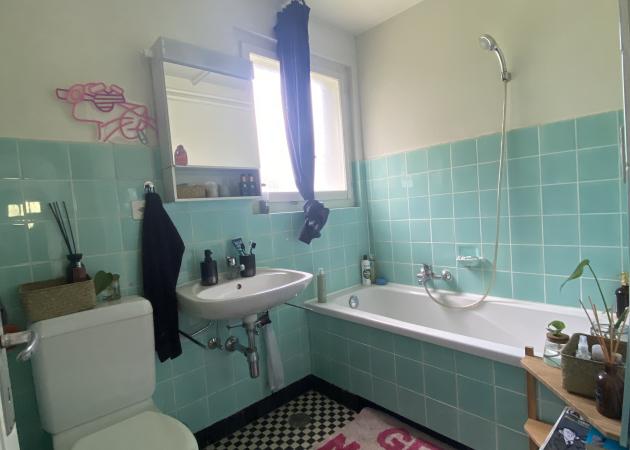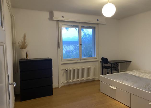Je suis étudiante en droit, je me prépare pour l'examen du barreau et je loue une chambre dans mon appartement de 3 pièces et demi dans une maison de deux appartement. Il y a un jardin avec terrasse privative.