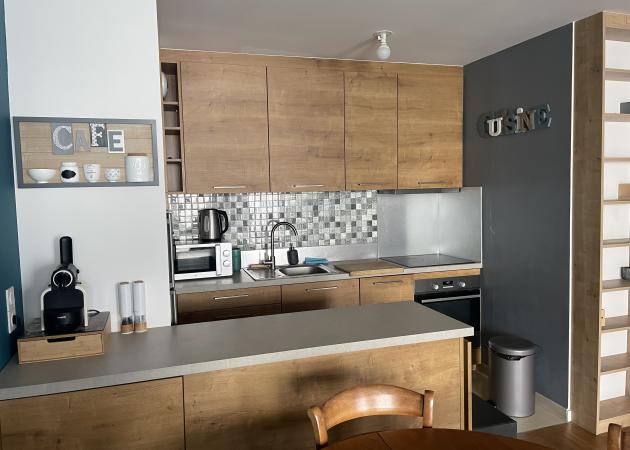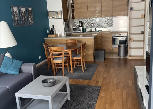 Le salon ainsi que la cuisine équipée américaine sont à votre disposition.