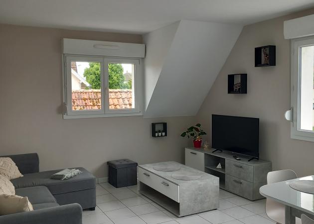 Super appartement lumineux avec tout confort. Il est situé au 1er étage d'une maison individuelle et dispose d'une entrée indépendante. Parking privatif. Proximité des transports en communs arrêt de bus à 200m