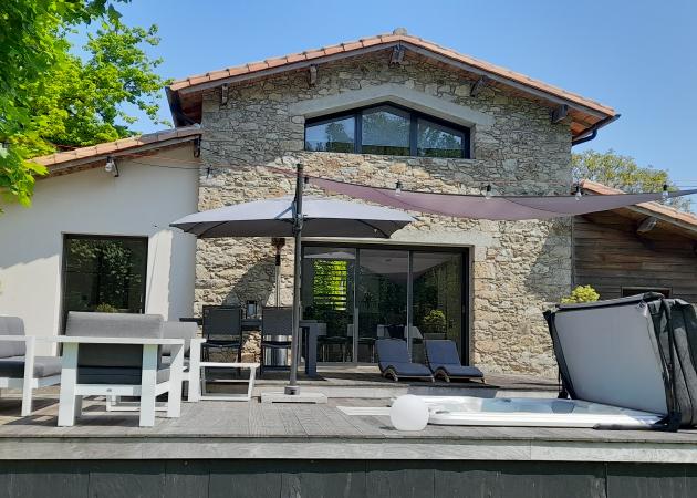 Notre gîte est situé à 6 kms du Hellfest. Le logement contient un séjour, une cuisine, un salon, une chambre avec un lit de 160 x 190 et dans la mezzanine, un canapé convertible de 140 x 190. Vous pourrez vous détendre sur une terrasse de 48 m2 sur laquelle il y a un jacuzzi enterré. Le jardin autour est de 700 m2 avec un barbecue et une plancha mis à disposition pour les moments conviviaux entre amis. Vous pourrez garer votre voiture sur un parking dédié aux voyageurs.
