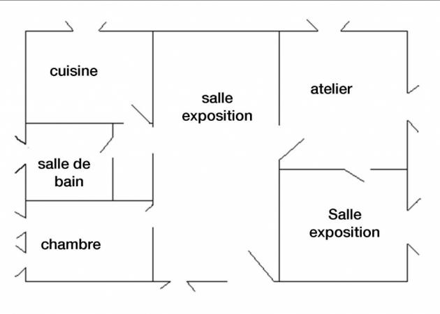 Au rez de chaussée d'une ancienne ferme à 150m du village de caractère de Vinezac. L'entrée commune à l'ensemble de la maison se fait par une cour intérieure.La première pièce est une galerie d'art. Une chambre voutée exposée sud, deux fenêtres. Séparées par la galerie une salle de bain WC et une cuisine.