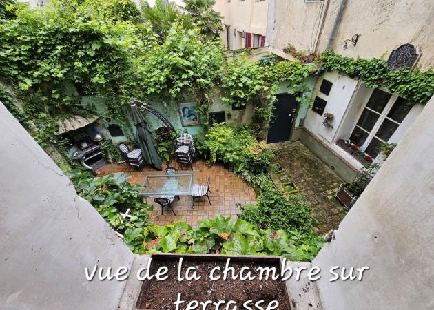 Grande chambre de 15 m2 avec avec lit 2 places + petit salon, salle de bain/wc + dressing (au dessus de la chambre 10 m2) dans grande maison de 350 m2. Parties communes à partager : salon avec tv, salle à manger, cuisine et jardinet.