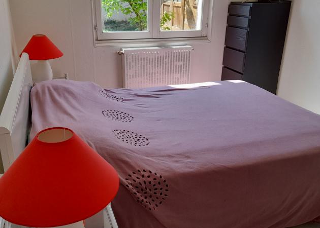 Chambre privée dans maison individuelle, lit 140 donnant sur jardin, penderie, commode. Moyens de transports et commerces à proximité. Cuisine, séjour, salle de bain, wc à partager. Arrivée après 14h. Départ avant 11h