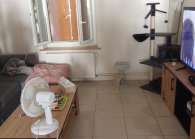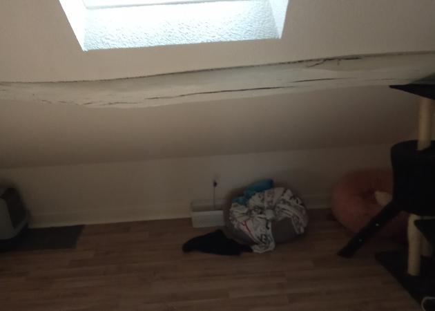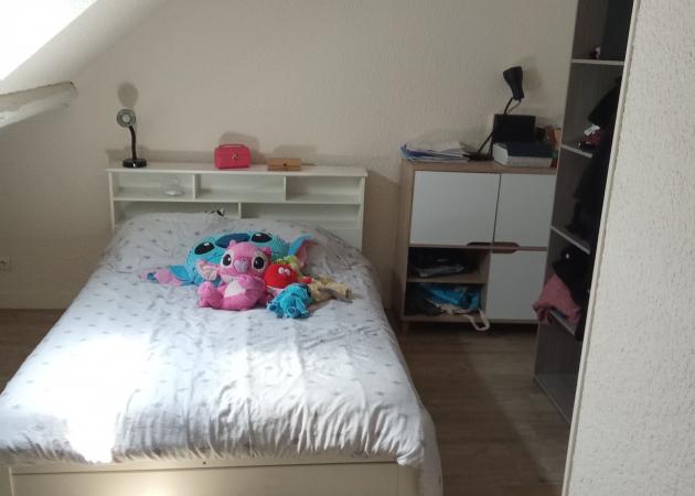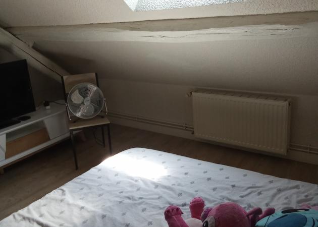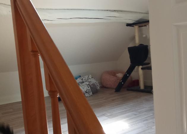 3 chambres privées de même dimension (2 sous les toits) et en commun : pièce à vivre (cuisine/séjour), WC et douche