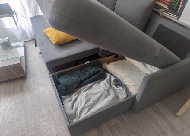 - Le canapé-lit se trouve dans le salon/cuisine (donc un espace partagé).