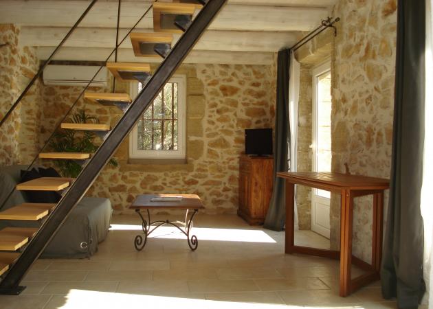 Gîte de caractère en pierre avec piscine privée, composé d'une cuisine équipée, d'un salon et d'une chambre, d'une salle de bain. Grande Terrasse avec salon de jardin, barbecue et vue jardin-piscine.