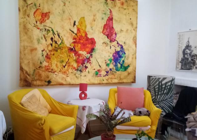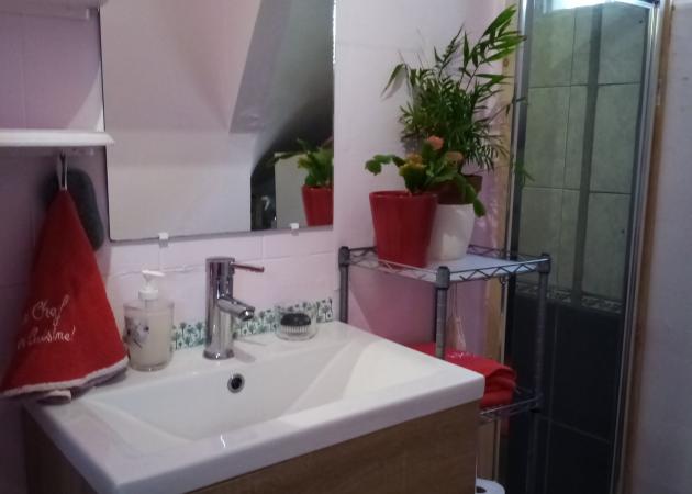 Salle de bain partagée, ainsi que grande cuisine, Living-room, petit jardin.