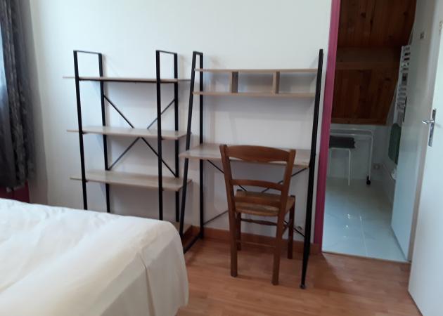 A l'étage, je loue une chambre avec 2 lits 90x190, salle d'eau avec douche et WC. les lits et la literie sont neufs. réfrigérateur.