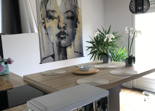 liberté de circulation aux autres pièces de l'appartement, utilisation des appareils ménagers, service de table et produits ménagers fournis. N'hésitez à me contacter, je vis seul et suis cadre de la fonction publique.