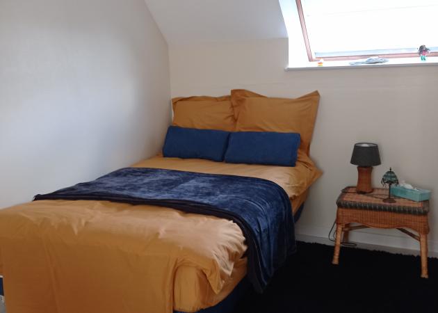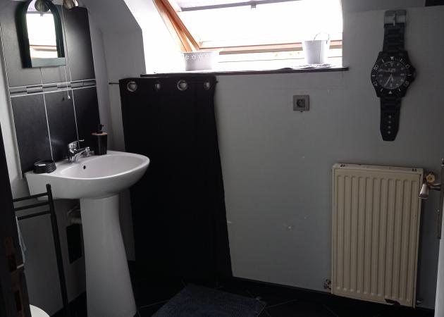 Vous pourrez vous reposer dans une chambre spacieuse à l'étage disposant d' un canapé convertible (L:193 cm-Largeur 115 cm), équipé d'un matelas épais pour votre confort. WC et salle de bains indépendants . Un espace travail est prévu. Petite TV.