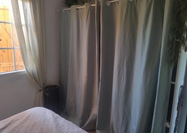 Salle de bain face à la chambre et chambre reculer des pièces principale.