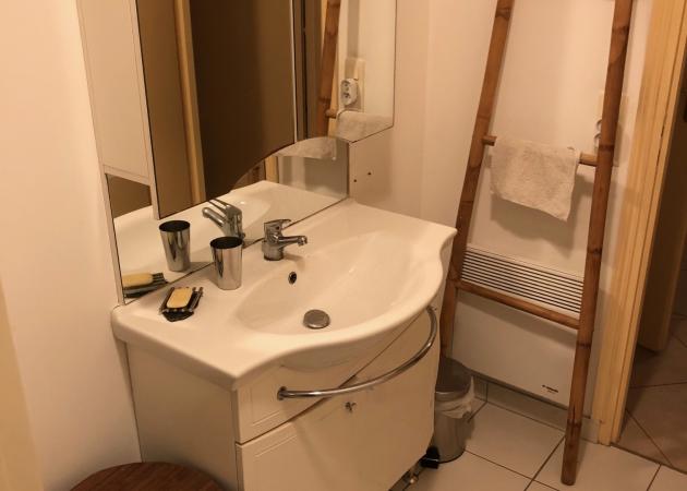 Lit, bureau et penderie, une salle de bain privative, accès à cuisine toute équipée, un frigo à disposition, wifi (fibre), TV.