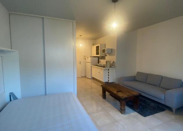 Le studio est entièrement équipée pour 2 personnes maximum avec un lit escamotable 2 places (140x190), canapé non convertible, micro onde, cafetière, sèche serviette, lave linge, baignoire. Stationnement libre à horodateur, arrêt de bus Beausoleil et Menton en bas de la résidence.