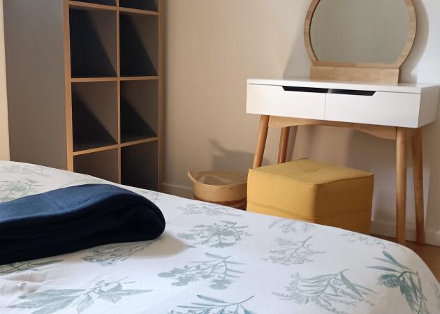 La maison est agréable, spacieuse et chaleureuse. Le quartier est calme, à 10 minutes de l'océan. La maison fait environ 84 M2 la chambre en question est meublée.