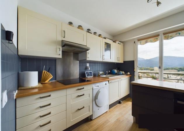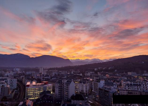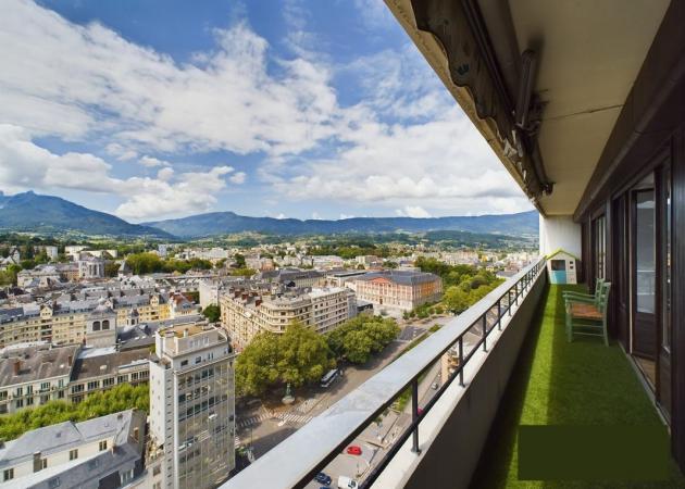 Dans un grand appartement de standing de 142 m² de style moderne, traversant et en très bon état, au 15 ème étage avec ascenseur, avec vue panoramique sur les Alpes et Chambéry.
