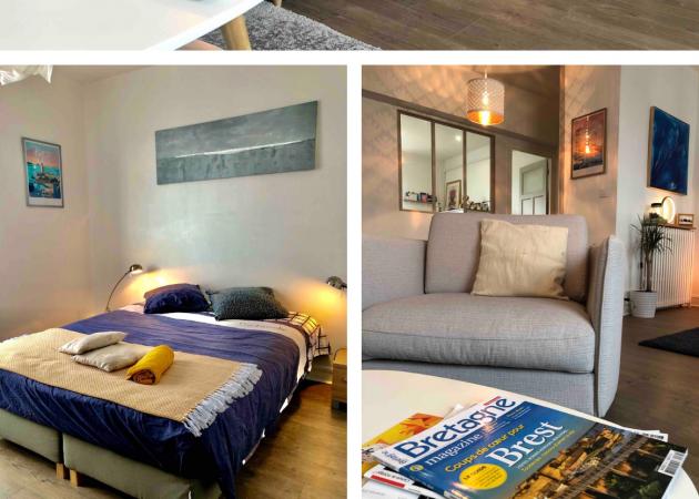 Dans appartement situé au centre ville ville de Brest mais au calme, cette chambre de 14 m2 est très agréable. La cuisine et la salle de bains sont modernes et fonctionnelles.