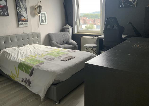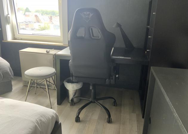 - Chambre individuelle meublée : lit 140x200, chevet, garde robe type dressing, meuble de rangement, bureau, fauteuil